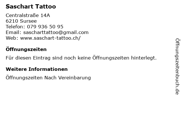 | Öffnungszeiten Saschart Tattoo in Sursee anzeigen | |