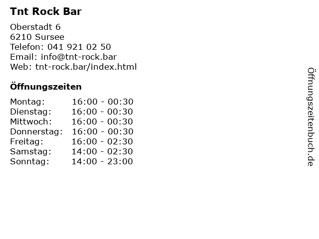 | Öffnungszeiten Tnt Rock Bar in Sursee anzeigen | |