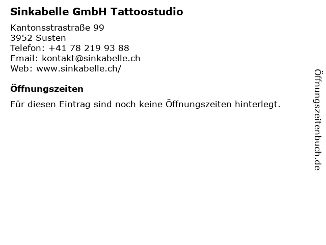 | Öffnungszeiten Sinkabelle GmbH Tattoostudio in Susten anzeigen | |