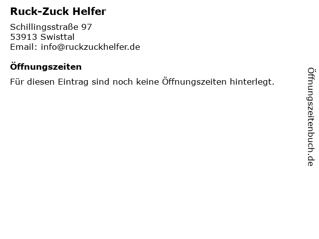 | Öffnungszeiten Ruck-Zuck Helfer in Swisttal anzeigen | |