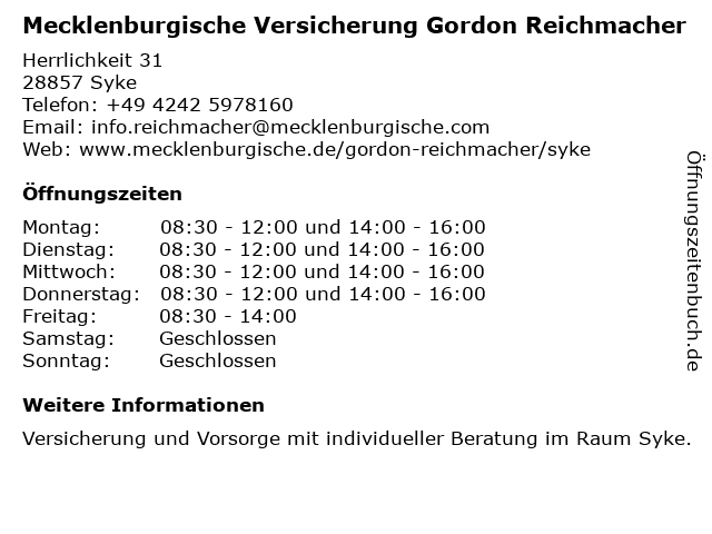 | Montag | 08:30-12:00 und 14:00-16:00 |