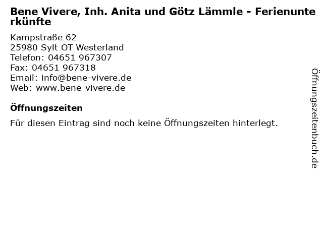 | Bene Vivere, Inh. Anita und Götz Lämmle - Ferienunterkünfte anrufen | |