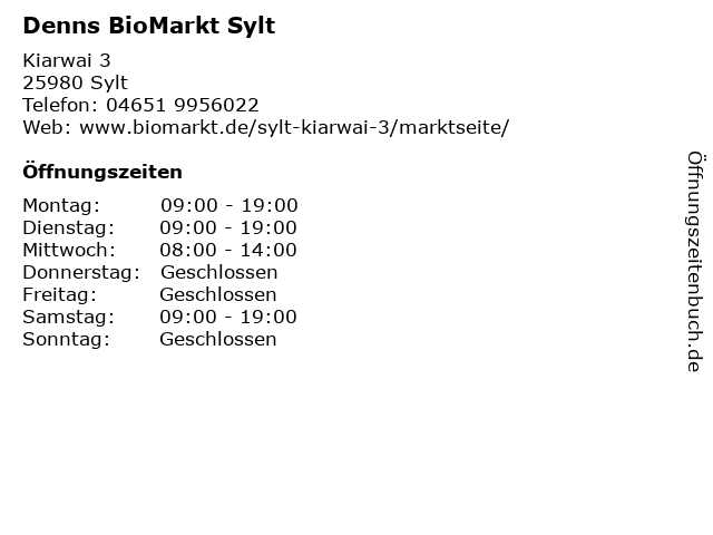 | Öffnungszeiten Denns BioMarkt Sylt in Sylt anzeigen | |