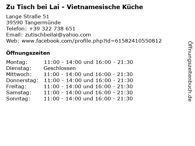 Branchen & Suchbegriffe zu Zu Tisch bei Lai - Vietnamesische Küche:asia, asiatisch, bei, ente, küche, lai, nudeln, reis, restaurant, sushi, tisch, vietnamesische, wok, zu |