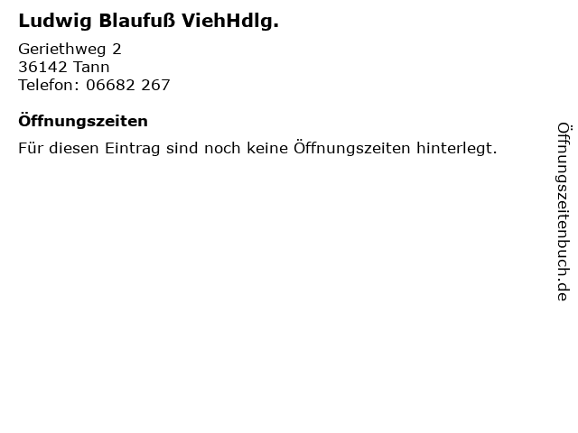 | Öffnungszeiten Ludwig Blaufuß ViehHdlg. in Tann anzeigen | |