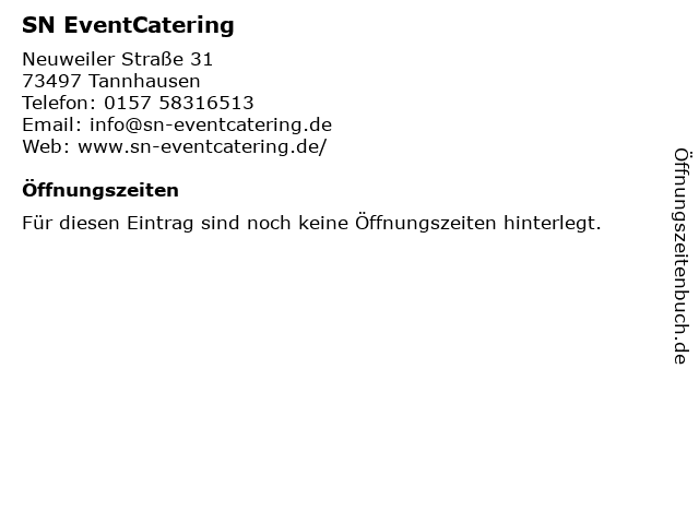 Öffnungszeiten SN EventCatering in Tannhausen anzeigen | |