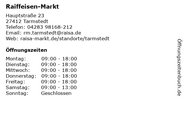 | Öffnungszeiten Raiffeisen-Markt in Tarmstedt anzeigen | |