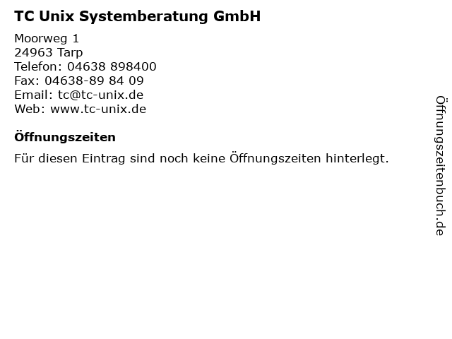 | Öffnungszeiten TC Unix Systemberatung GmbH in Tarp anzeigen | |