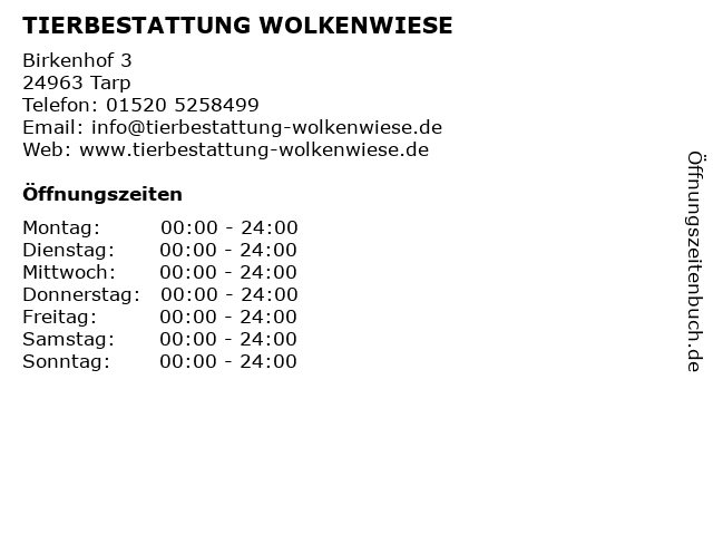 | Öffnungszeiten TIERBESTATTUNG WOLKENWIESE in Tarp anzeigen | |