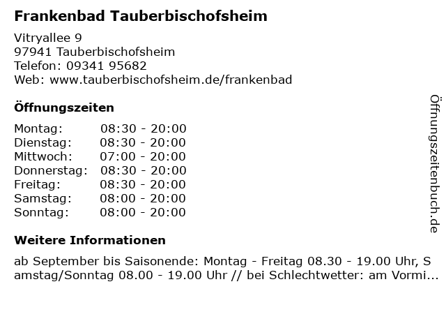Branchen & Suchbegriffe zu Frankenbad Tauberbischofsheim:anfang, bad, bis, frankenbad, freizeit, mai, september |