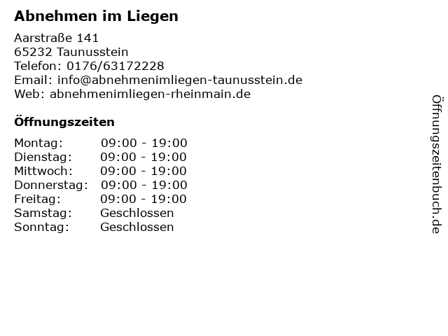 | Öffnungszeiten Abnehmen im Liegen in Taunusstein anzeigen | |