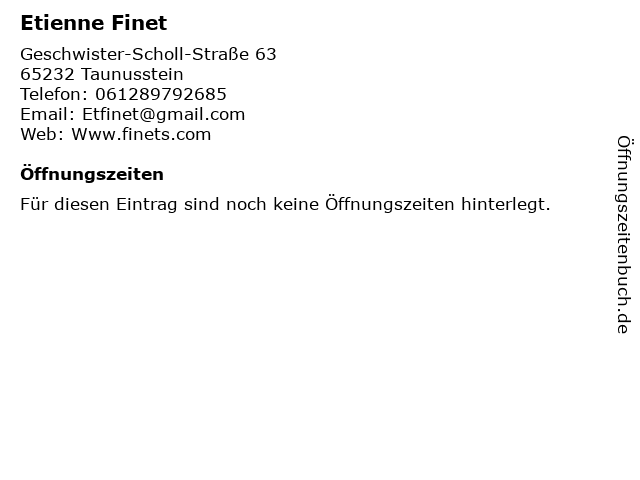 | Öffnungszeiten Etienne Finet in Taunusstein anzeigen | |