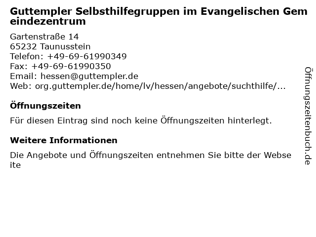 | Guttempler Selbsthilfegruppen im Evangelischen Gemeindezentrum anrufen | |