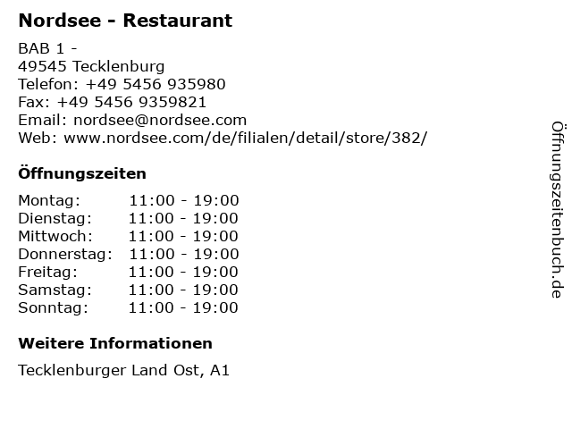 | Öffnungszeiten Nordsee - Restaurant in Tecklenburg anzeigen | |