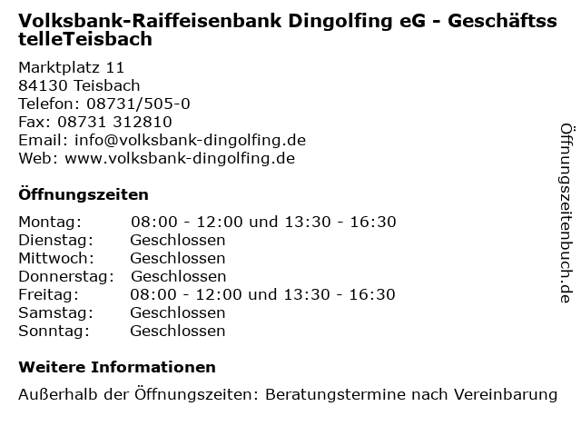 Branchen & Suchbegriffe zu Volksbank-Raiffeisenbank Dingolfing eG - GeschäftsstelleTeisbach:abheben, bank, banken, eg, einzahlen, geld, geldinstitut, geschäftsstelle, geschäftsstelleteisbach, kredit, raiffeisen, raiffeisen-banken, raiffeisenbank, sparen, teisbach, volksbank, volksbanken, vr, vr bank, vr-bank |