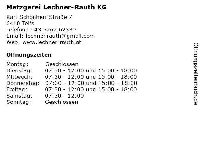 | Öffnungszeiten Metzgerei Lechner-Rauth KG in Telfs anzeigen | |