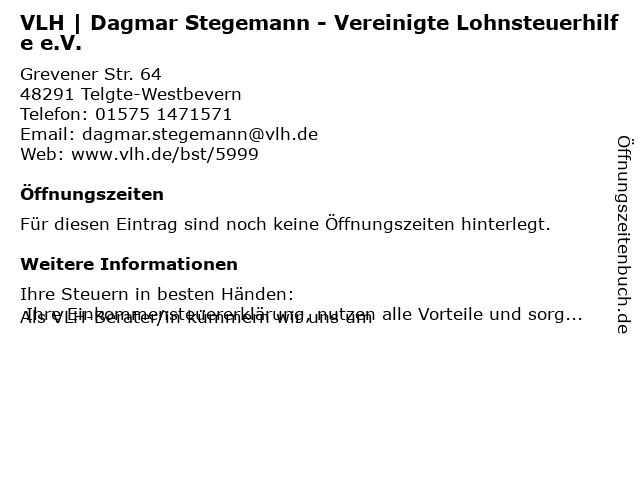 | VLH | Dagmar Stegemann - Vereinigte Lohnsteuerhilfe e.V. anrufen | |