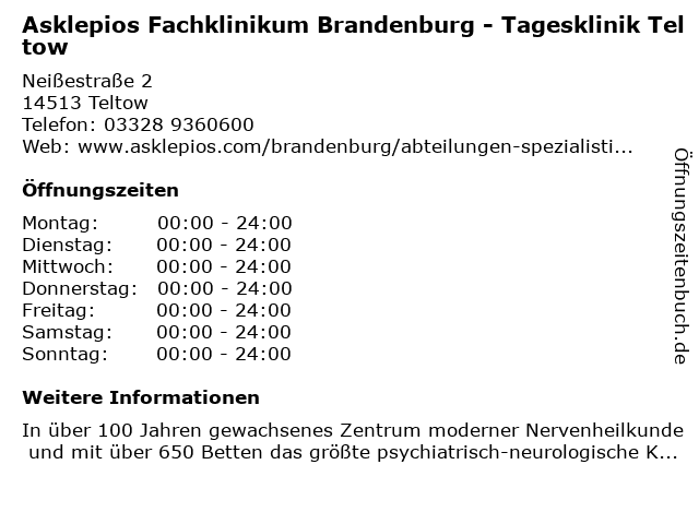 Branchen & Suchbegriffe zu Asklepios Fachklinikum Brandenburg - Tagesklinik Teltow:asklepios, fachklinikum, tagesklinik, teltow |