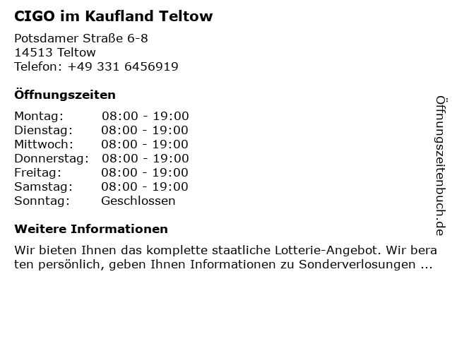 Öffnungszeiten CIGO im Kaufland Teltow in Teltow anzeigen | |