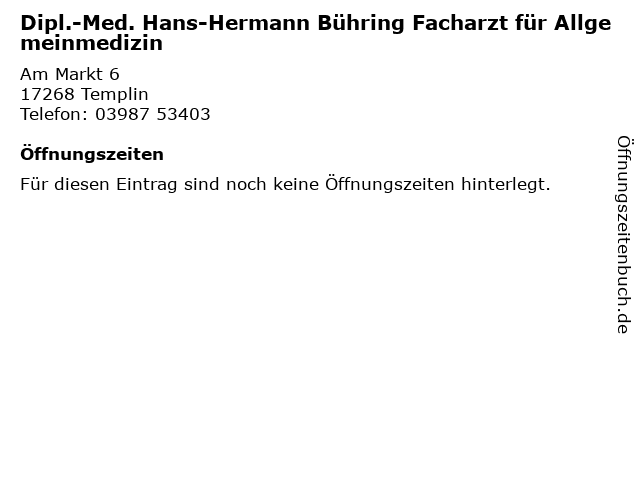 | Dipl.-Med. Hans-Hermann Bühring Facharzt für Allgemeinmedizin anrufen | |
