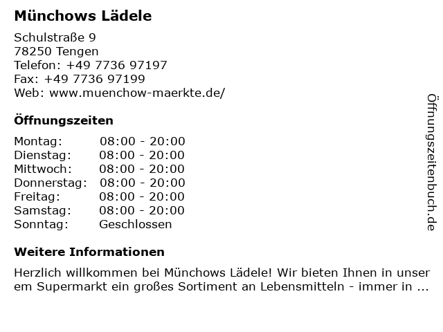 | Öffnungszeiten Münchows Lädele in Tengen anzeigen | |