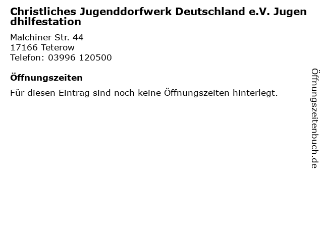 | Christliches Jugenddorfwerk Deutschland e.V. Jugendhilfestation anrufen | |