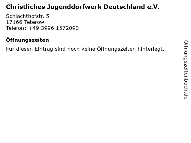 | Christliches Jugenddorfwerk Deutschland e.V. anrufen | |