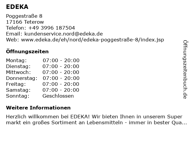 | Öffnungszeiten EDEKA in Teterow anzeigen | |
