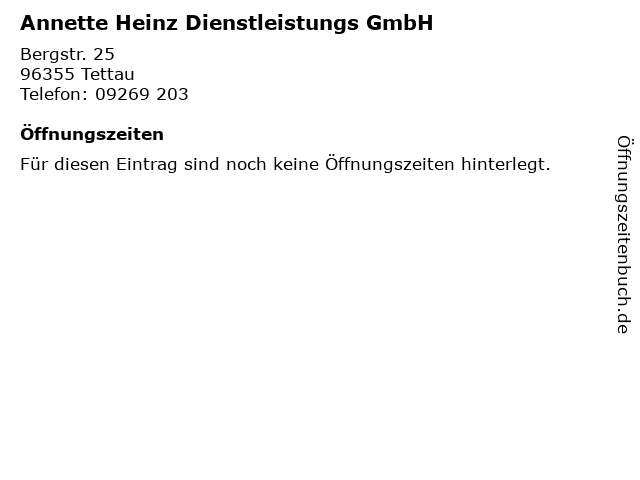 | Annette Heinz Dienstleistungs GmbH anrufen | |