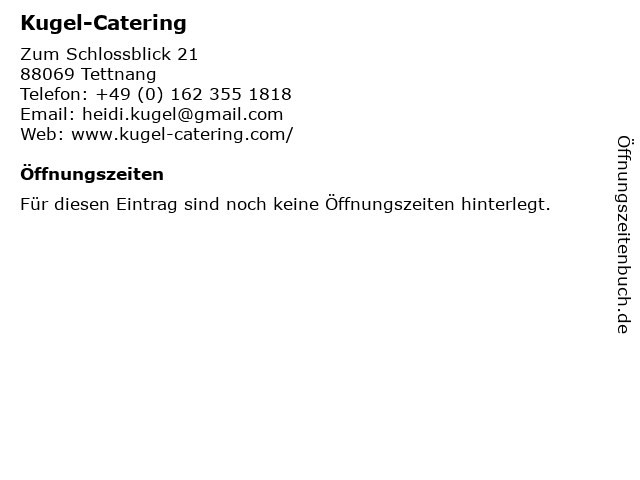 | Öffnungszeiten Kugel-Catering in Tettnang anzeigen | |