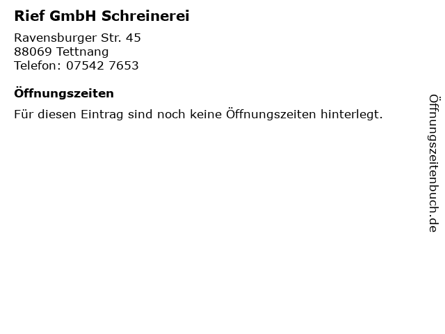 | Öffnungszeiten Rief GmbH Schreinerei in Tettnang anzeigen | |