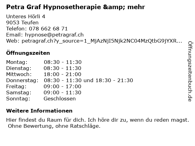 Branchen & Suchbegriffe zu Petra Graf Hypnosetherapie & mehr:alternative heilmethoden, depressionstherapie, graf, hypnosetherapie, mehr, petra, rauchentwöhnung, schmerztherapie, suchtmedizin, suchttherapie |