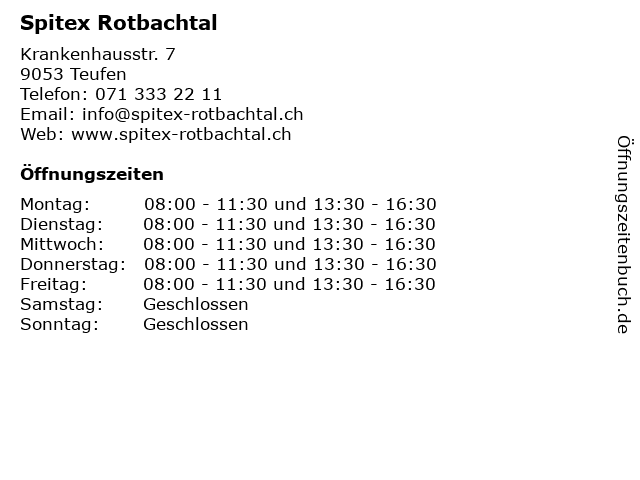 | Öffnungszeiten Spitex Rotbachtal in Teufen anzeigen | |