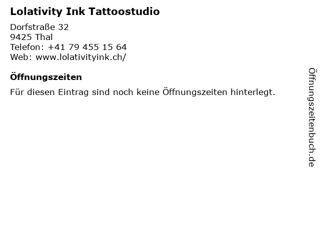 | Öffnungszeiten Lolativity Ink Tattoostudio in Thal anzeigen | |
