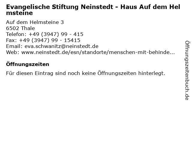 | Evangelische Stiftung Neinstedt - Haus Auf dem Helmsteine anrufen | |