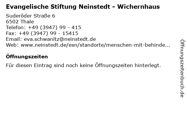 | Evangelische Stiftung Neinstedt - Wichernhaus anrufen | |