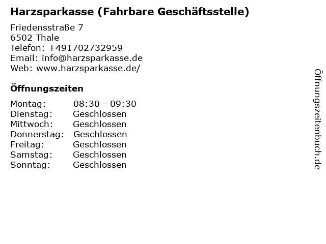 Branchen & Suchbegriffe zu Harzsparkasse (Fahrbare Geschäftsstelle):fahrbare, geschäftsstelle, harzsparkasse |