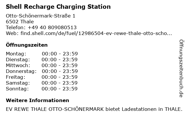 Telefonnummer Shell Recharge Charging Station in Thale (+49 40 809080513) anrufen
