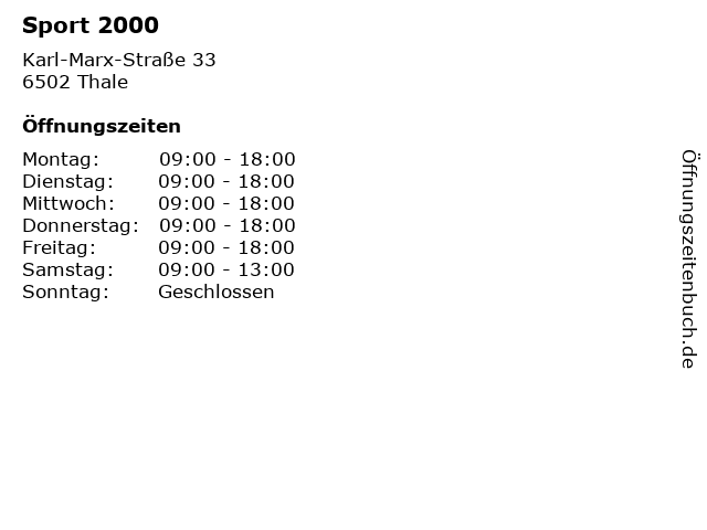 | Öffnungszeiten Sport 2000 in Thale anzeigen | |