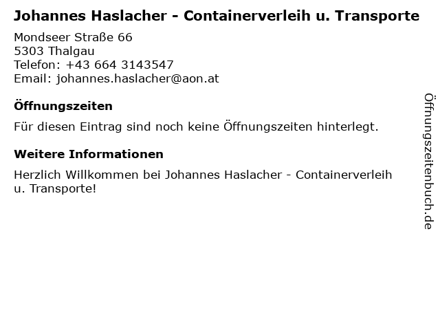 | Johannes Haslacher - Containerverleih u. Transporte anrufen | |