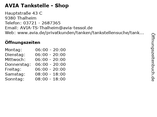 | Öffnungszeiten AVIA Tankstelle - Shop in Thalheim anzeigen | |