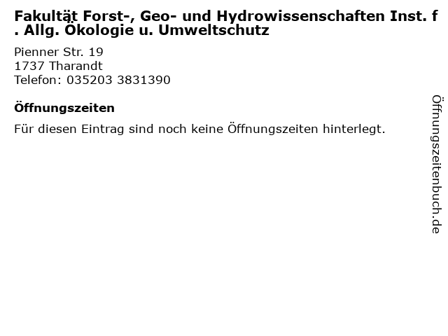 | Fakultät Forst-, Geo- und Hydrowissenschaften Inst. f. Allg. Ökologie u. Umweltschutz anrufen | |