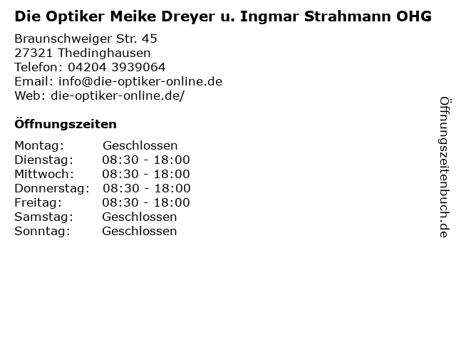 Die Optiker Meike Dreyer u. Ingmar Strahmann OHG in Thedinghausen | Telefonnummer, Öffnungszeiten und Adresse