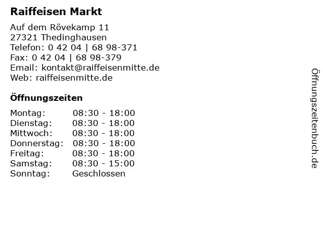 | Öffnungszeiten Raiffeisen Markt in Thedinghausen anzeigen | |