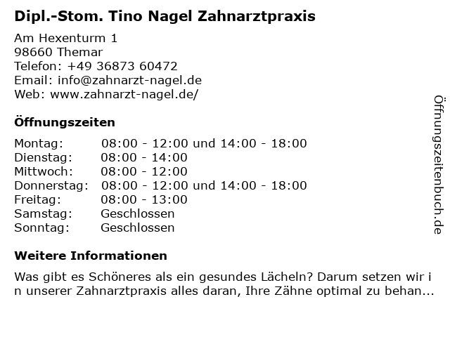 Branchen & Suchbegriffe zu Dipl.-Stom. Tino Nagel Zahnarztpraxis:bleaching, dipl., implantologie, nagel, parodontologie, parodontose-behandlung, prophylaxe, stom., tino, vollkeramik, wurzelbehandlung, zahnarztpraxis, zahnersatz, zahnärzte, ästhetische zahnheilkunde |