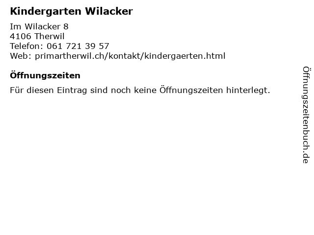 | Öffnungszeiten Kindergarten Wilacker in Therwil anzeigen | |