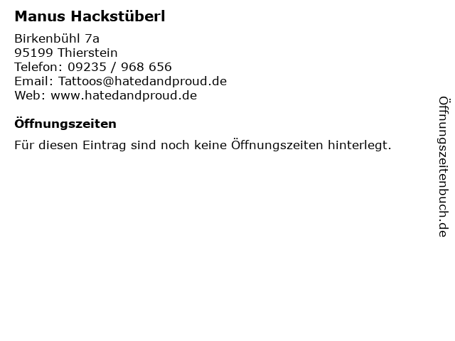| Öffnungszeiten Manus Hackstüberl in Thierstein anzeigen | |