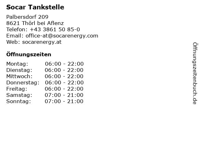 | Öffnungszeiten Socar Tankstelle in Thörl bei Aflenz anzeigen | |