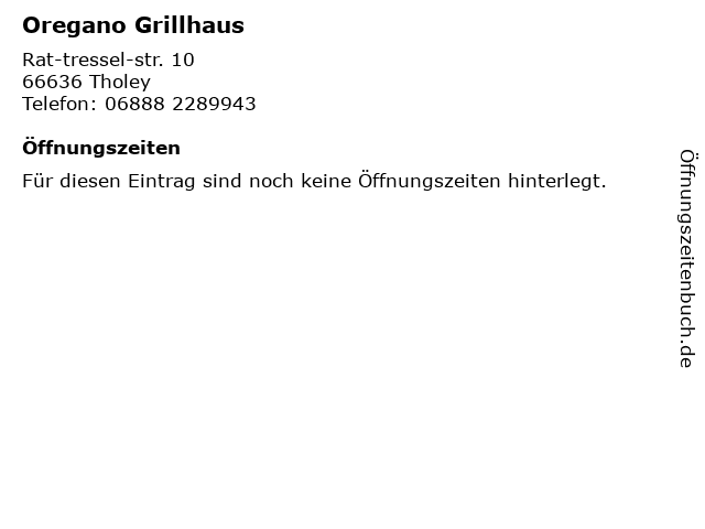 | Öffnungszeiten Oregano Grillhaus in Tholey anzeigen | |