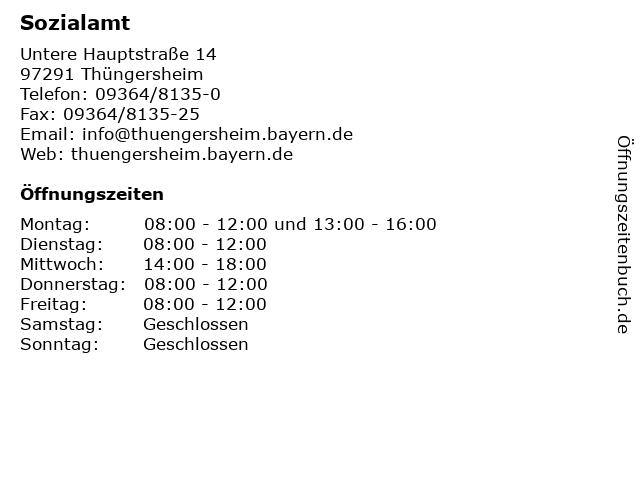 | Öffnungszeiten Sozialamt in Thüngersheim anzeigen | |